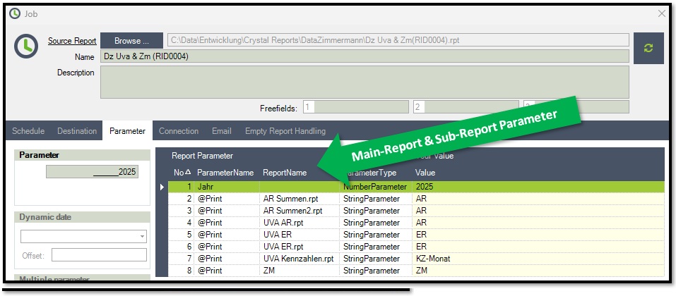 - New Feature: The job parameters are displayed with the sorting from Crystal Reports.