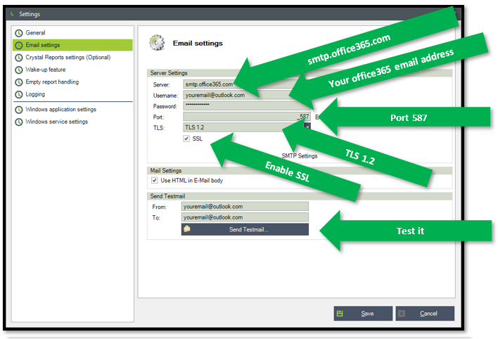 Once you've entered these settings, you'll be able to send emails from Smart Report Organizer using your configured SMTP server.